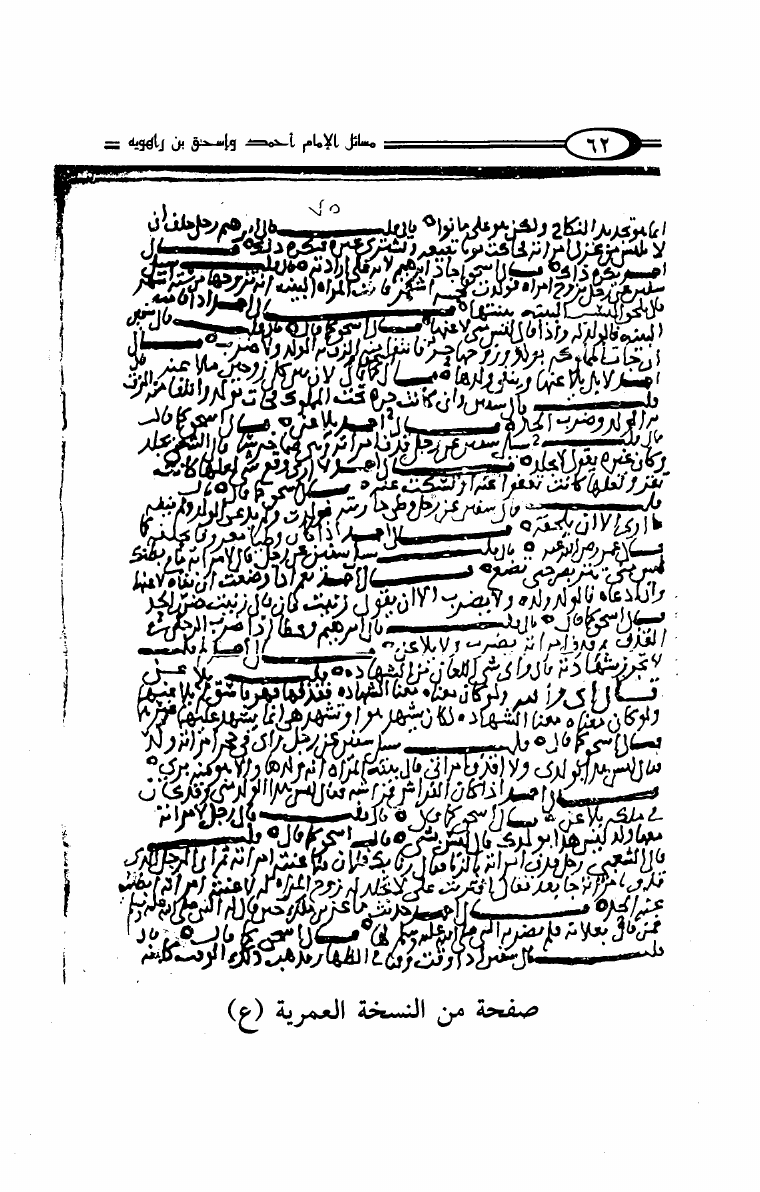 نام کتاب : مسائل الإمام أحمد بن حنبل وإسحاق ابن راهويه رواية إسحاق بن منصور الكوسج المروزي (ط. دار الهجرة) نویسنده : سحاق بن منصور الكوسج المروزي جلد : 1 صفحه : 62