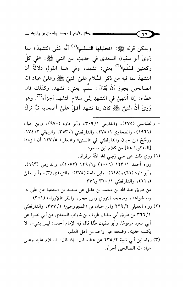نام کتاب : مسائل الإمام أحمد بن حنبل وإسحاق ابن راهويه رواية إسحاق بن منصور الكوسج المروزي (ط. دار الهجرة) نویسنده : سحاق بن منصور الكوسج المروزي جلد : 1 صفحه : 66