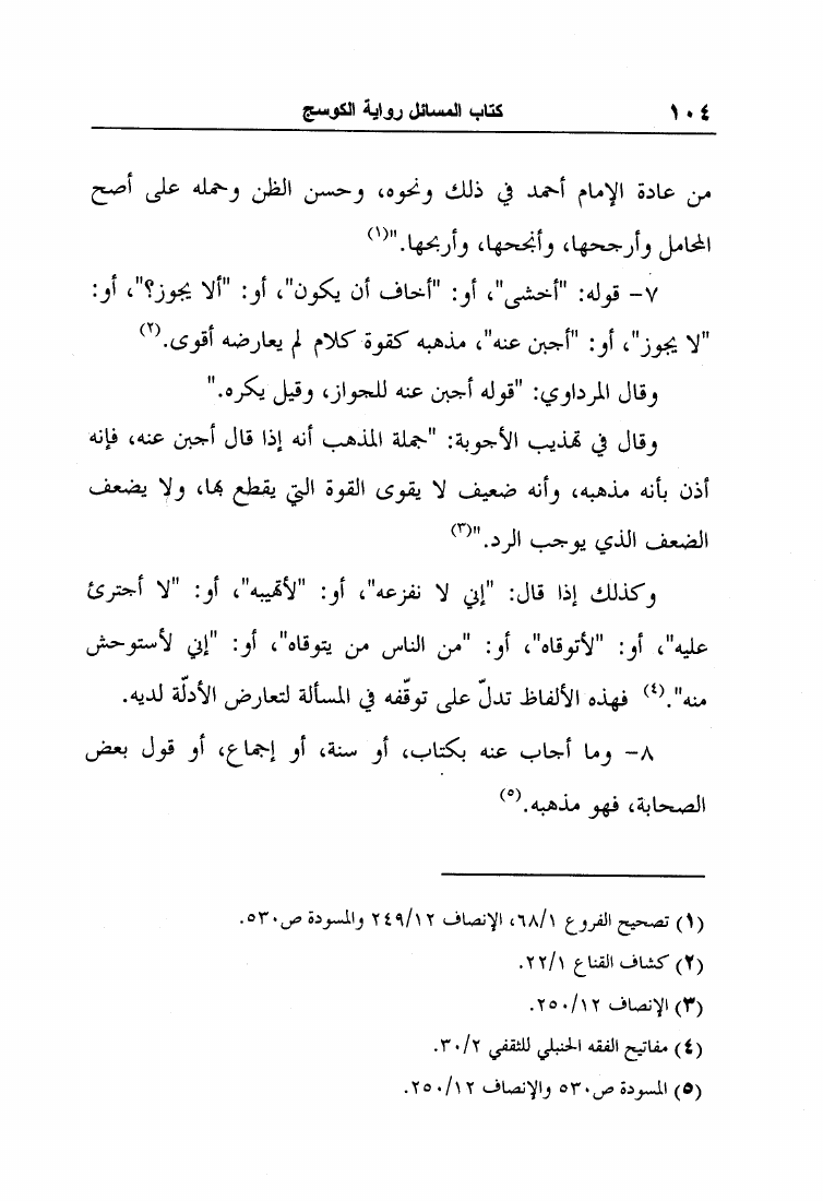 نام کتاب : مسائل الإمام أحمد بن حنبل وإسحاق بن راهويه برواية إسحاق بن منصور الكوسج المروزي (ط الجامعة الإسلامية) نویسنده : إسحاق بن منصور الكوسج المروزي جلد : 1 صفحه : 104