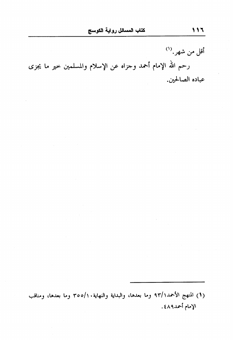 نام کتاب : مسائل الإمام أحمد بن حنبل وإسحاق بن راهويه برواية إسحاق بن منصور الكوسج المروزي (ط الجامعة الإسلامية) نویسنده : إسحاق بن منصور الكوسج المروزي جلد : 1 صفحه : 116