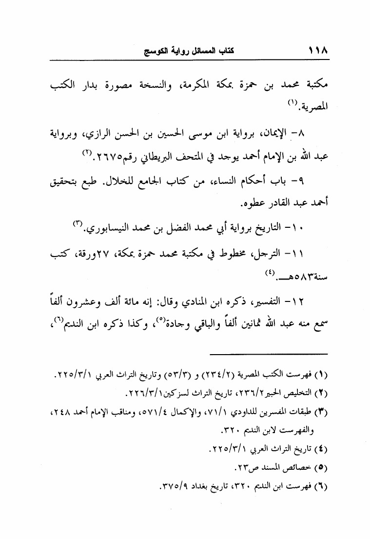 نام کتاب : مسائل الإمام أحمد بن حنبل وإسحاق بن راهويه برواية إسحاق بن منصور الكوسج المروزي (ط الجامعة الإسلامية) نویسنده : إسحاق بن منصور الكوسج المروزي جلد : 1 صفحه : 118
