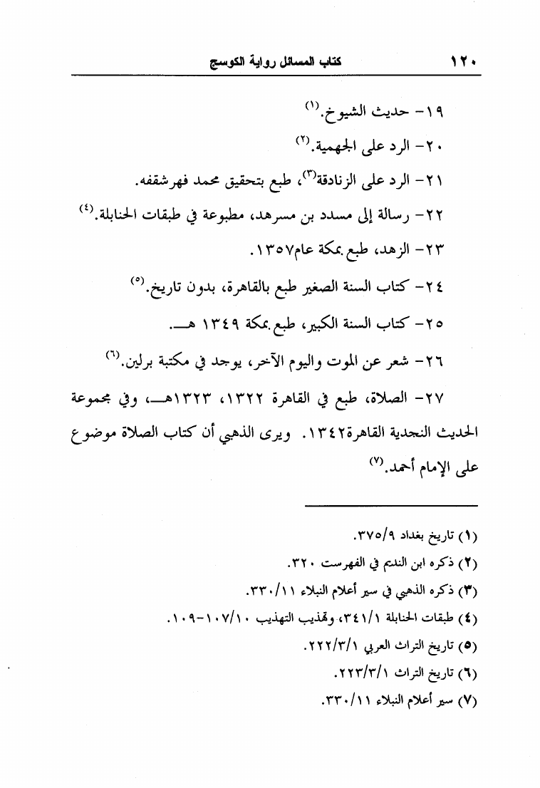 نام کتاب : مسائل الإمام أحمد بن حنبل وإسحاق بن راهويه برواية إسحاق بن منصور الكوسج المروزي (ط الجامعة الإسلامية) نویسنده : إسحاق بن منصور الكوسج المروزي جلد : 1 صفحه : 120