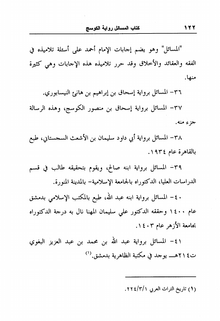 نام کتاب : مسائل الإمام أحمد بن حنبل وإسحاق بن راهويه برواية إسحاق بن منصور الكوسج المروزي (ط الجامعة الإسلامية) نویسنده : إسحاق بن منصور الكوسج المروزي جلد : 1 صفحه : 122
