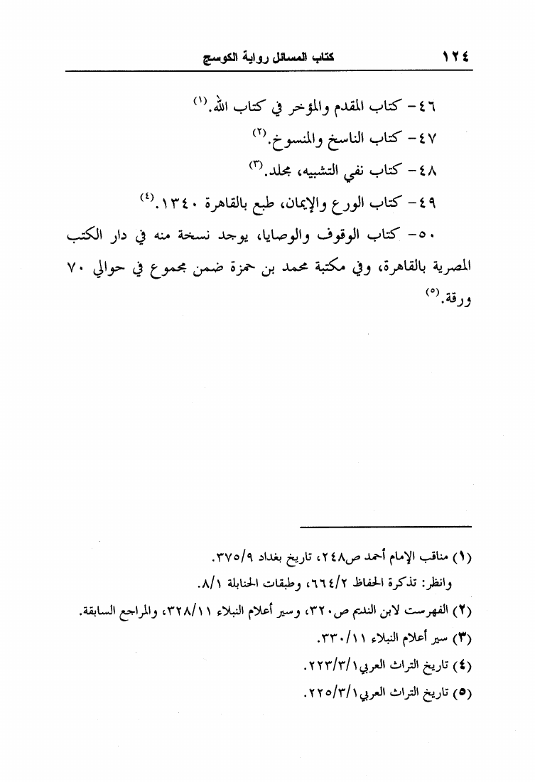 نام کتاب : مسائل الإمام أحمد بن حنبل وإسحاق بن راهويه برواية إسحاق بن منصور الكوسج المروزي (ط الجامعة الإسلامية) نویسنده : إسحاق بن منصور الكوسج المروزي جلد : 1 صفحه : 124