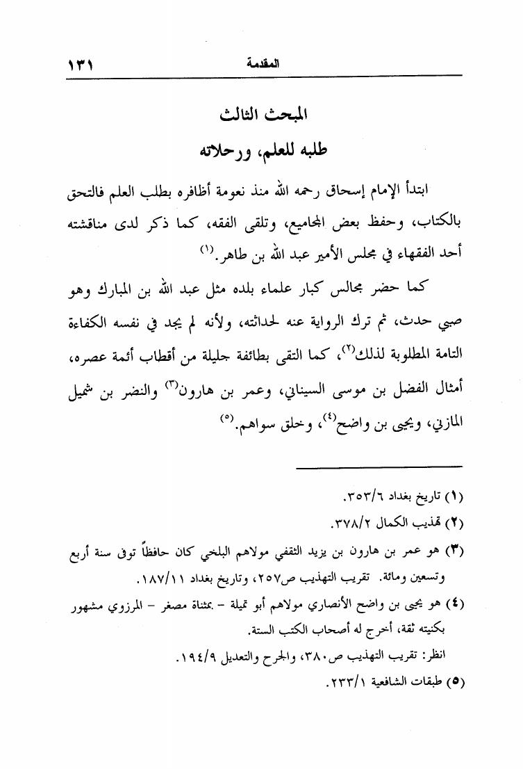 نام کتاب : مسائل الإمام أحمد بن حنبل وإسحاق بن راهويه برواية إسحاق بن منصور الكوسج المروزي (ط الجامعة الإسلامية) نویسنده : إسحاق بن منصور الكوسج المروزي جلد : 1 صفحه : 131