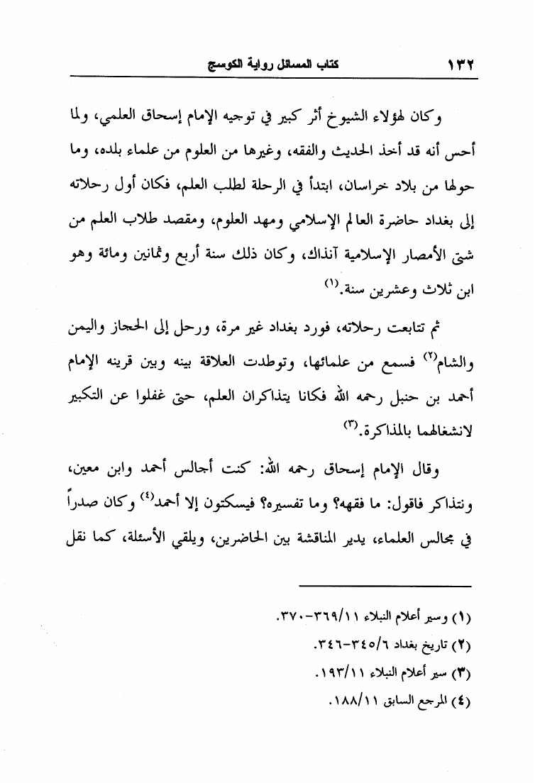 نام کتاب : مسائل الإمام أحمد بن حنبل وإسحاق بن راهويه برواية إسحاق بن منصور الكوسج المروزي (ط الجامعة الإسلامية) نویسنده : إسحاق بن منصور الكوسج المروزي جلد : 1 صفحه : 132