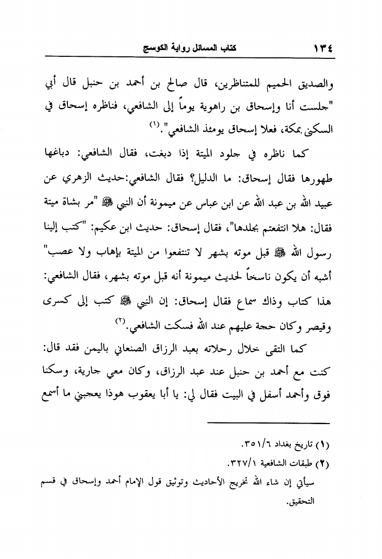 نام کتاب : مسائل الإمام أحمد بن حنبل وإسحاق بن راهويه برواية إسحاق بن منصور الكوسج المروزي (ط الجامعة الإسلامية) نویسنده : إسحاق بن منصور الكوسج المروزي جلد : 1 صفحه : 134