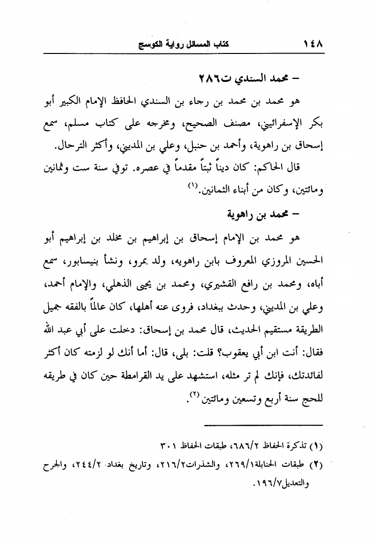 نام کتاب : مسائل الإمام أحمد بن حنبل وإسحاق بن راهويه برواية إسحاق بن منصور الكوسج المروزي (ط الجامعة الإسلامية) نویسنده : إسحاق بن منصور الكوسج المروزي جلد : 1 صفحه : 148