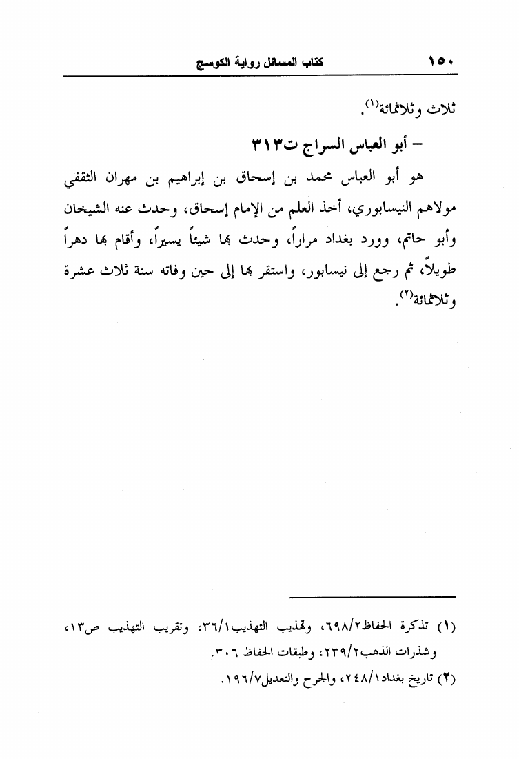 نام کتاب : مسائل الإمام أحمد بن حنبل وإسحاق بن راهويه برواية إسحاق بن منصور الكوسج المروزي (ط الجامعة الإسلامية) نویسنده : إسحاق بن منصور الكوسج المروزي جلد : 1 صفحه : 150