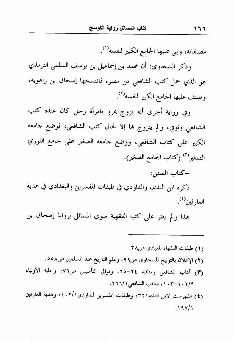 نام کتاب : مسائل الإمام أحمد بن حنبل وإسحاق بن راهويه برواية إسحاق بن منصور الكوسج المروزي (ط الجامعة الإسلامية) نویسنده : إسحاق بن منصور الكوسج المروزي جلد : 1 صفحه : 166