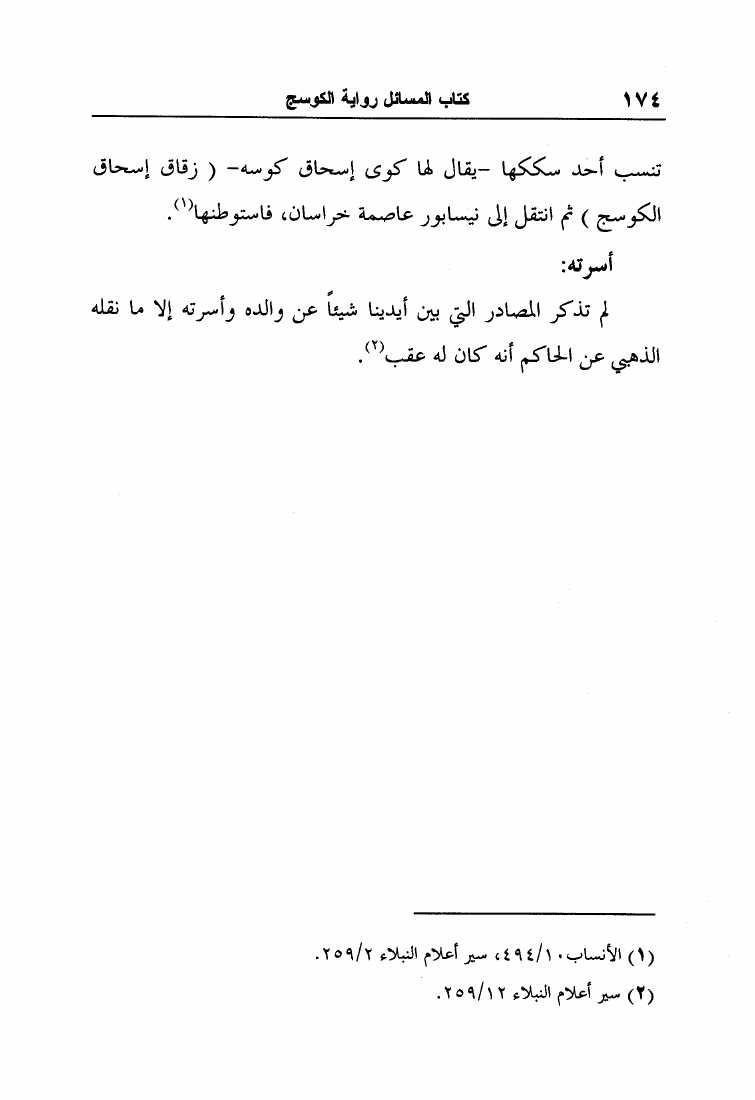 نام کتاب : مسائل الإمام أحمد بن حنبل وإسحاق بن راهويه برواية إسحاق بن منصور الكوسج المروزي (ط الجامعة الإسلامية) نویسنده : إسحاق بن منصور الكوسج المروزي جلد : 1 صفحه : 174