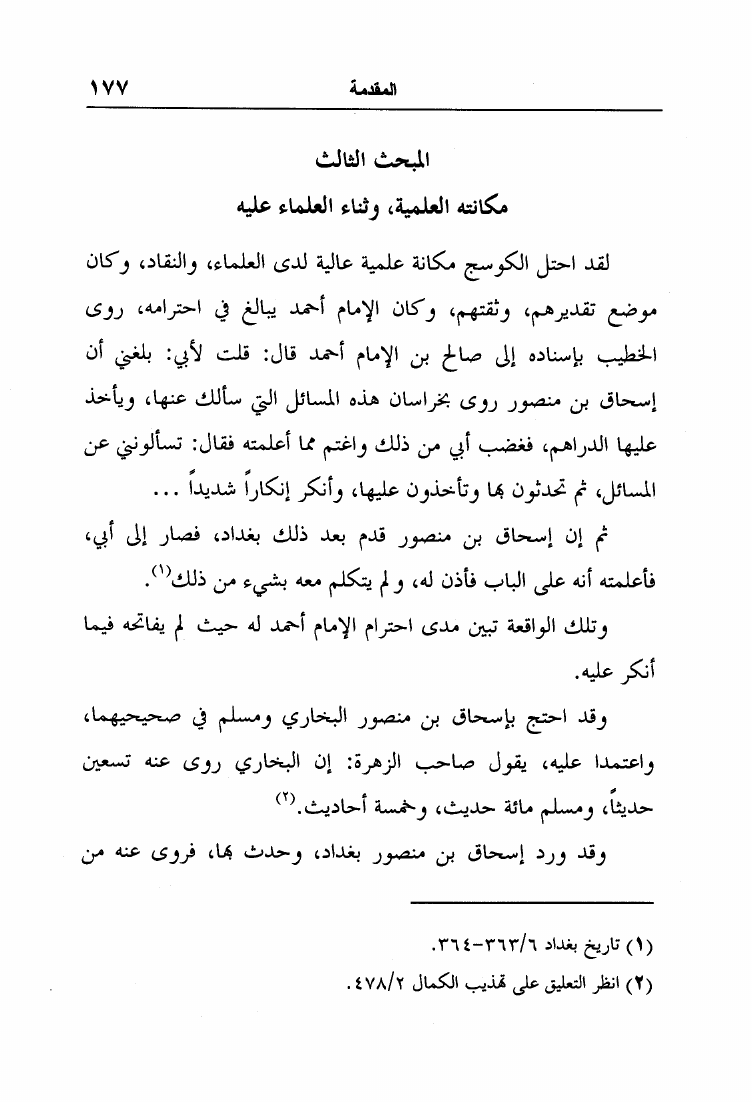 نام کتاب : مسائل الإمام أحمد بن حنبل وإسحاق بن راهويه برواية إسحاق بن منصور الكوسج المروزي (ط الجامعة الإسلامية) نویسنده : إسحاق بن منصور الكوسج المروزي جلد : 1 صفحه : 177