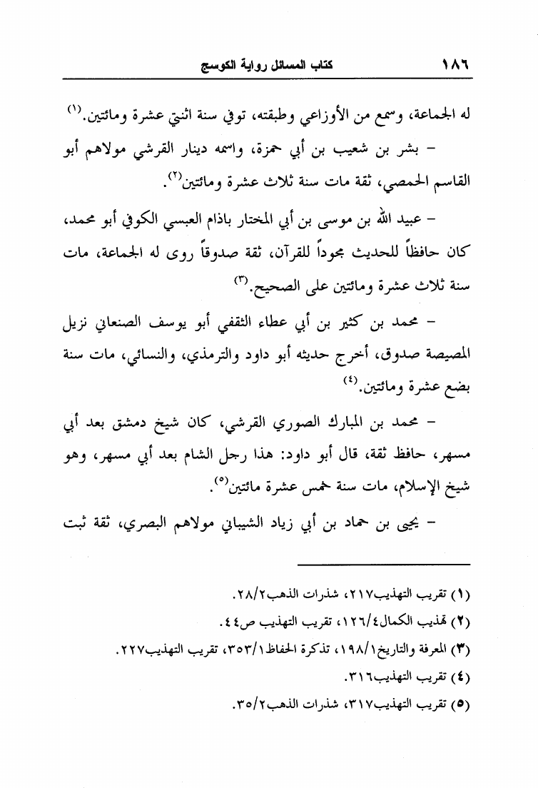 نام کتاب : مسائل الإمام أحمد بن حنبل وإسحاق بن راهويه برواية إسحاق بن منصور الكوسج المروزي (ط الجامعة الإسلامية) نویسنده : إسحاق بن منصور الكوسج المروزي جلد : 1 صفحه : 186