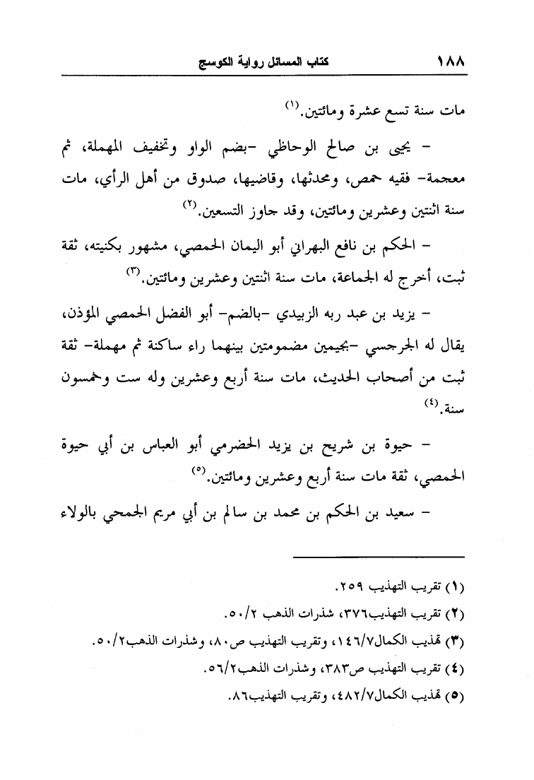 نام کتاب : مسائل الإمام أحمد بن حنبل وإسحاق بن راهويه برواية إسحاق بن منصور الكوسج المروزي (ط الجامعة الإسلامية) نویسنده : إسحاق بن منصور الكوسج المروزي جلد : 1 صفحه : 188