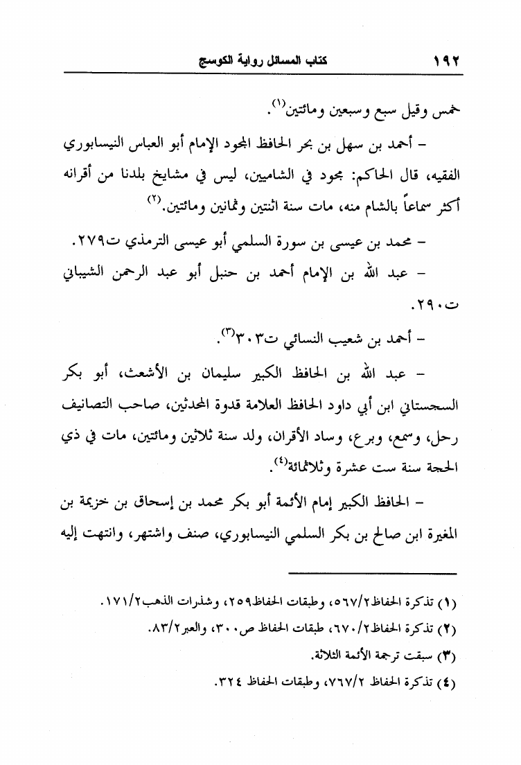 نام کتاب : مسائل الإمام أحمد بن حنبل وإسحاق بن راهويه برواية إسحاق بن منصور الكوسج المروزي (ط الجامعة الإسلامية) نویسنده : إسحاق بن منصور الكوسج المروزي جلد : 1 صفحه : 192