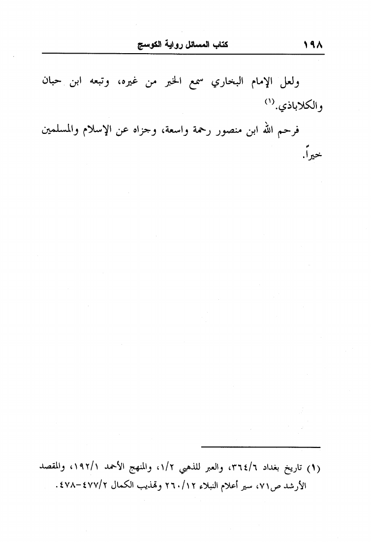 نام کتاب : مسائل الإمام أحمد بن حنبل وإسحاق بن راهويه برواية إسحاق بن منصور الكوسج المروزي (ط الجامعة الإسلامية) نویسنده : إسحاق بن منصور الكوسج المروزي جلد : 1 صفحه : 198
