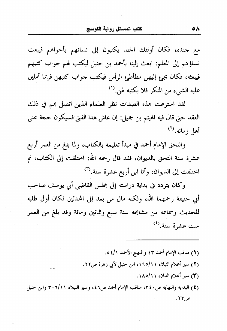 نام کتاب : مسائل الإمام أحمد بن حنبل وإسحاق بن راهويه برواية إسحاق بن منصور الكوسج المروزي (ط الجامعة الإسلامية) نویسنده : إسحاق بن منصور الكوسج المروزي جلد : 1 صفحه : 58