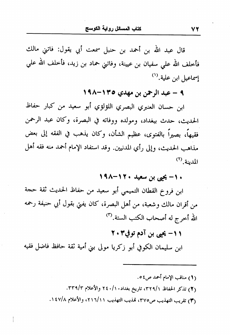 نام کتاب : مسائل الإمام أحمد بن حنبل وإسحاق بن راهويه برواية إسحاق بن منصور الكوسج المروزي (ط الجامعة الإسلامية) نویسنده : إسحاق بن منصور الكوسج المروزي جلد : 1 صفحه : 72