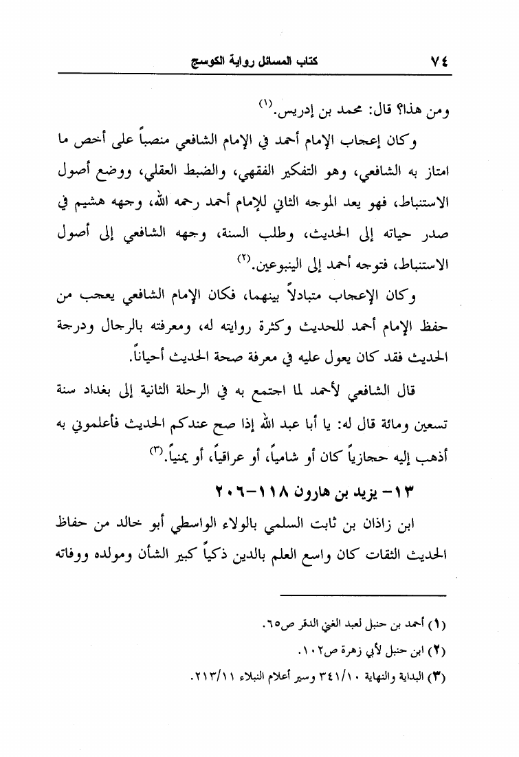 نام کتاب : مسائل الإمام أحمد بن حنبل وإسحاق بن راهويه برواية إسحاق بن منصور الكوسج المروزي (ط الجامعة الإسلامية) نویسنده : إسحاق بن منصور الكوسج المروزي جلد : 1 صفحه : 74