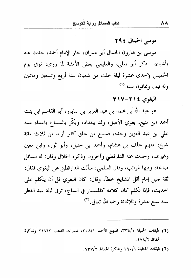 نام کتاب : مسائل الإمام أحمد بن حنبل وإسحاق بن راهويه برواية إسحاق بن منصور الكوسج المروزي (ط الجامعة الإسلامية) نویسنده : إسحاق بن منصور الكوسج المروزي جلد : 1 صفحه : 88