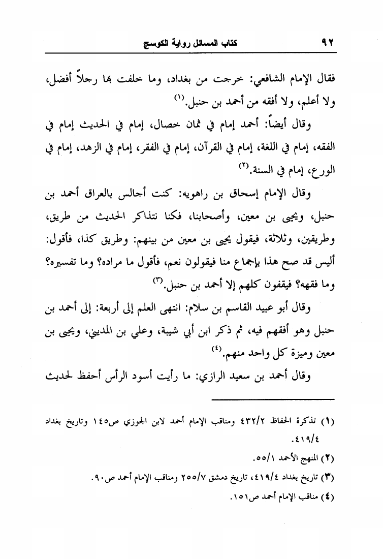 نام کتاب : مسائل الإمام أحمد بن حنبل وإسحاق بن راهويه برواية إسحاق بن منصور الكوسج المروزي (ط الجامعة الإسلامية) نویسنده : إسحاق بن منصور الكوسج المروزي جلد : 1 صفحه : 92