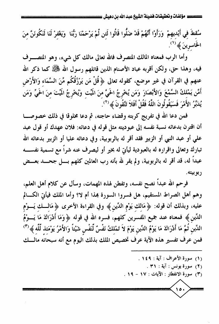 من مؤلفات وتحقيقات سماحة العلامة الشيخ عبد الله بن عمر بن دهيش (ت بن دهيش)