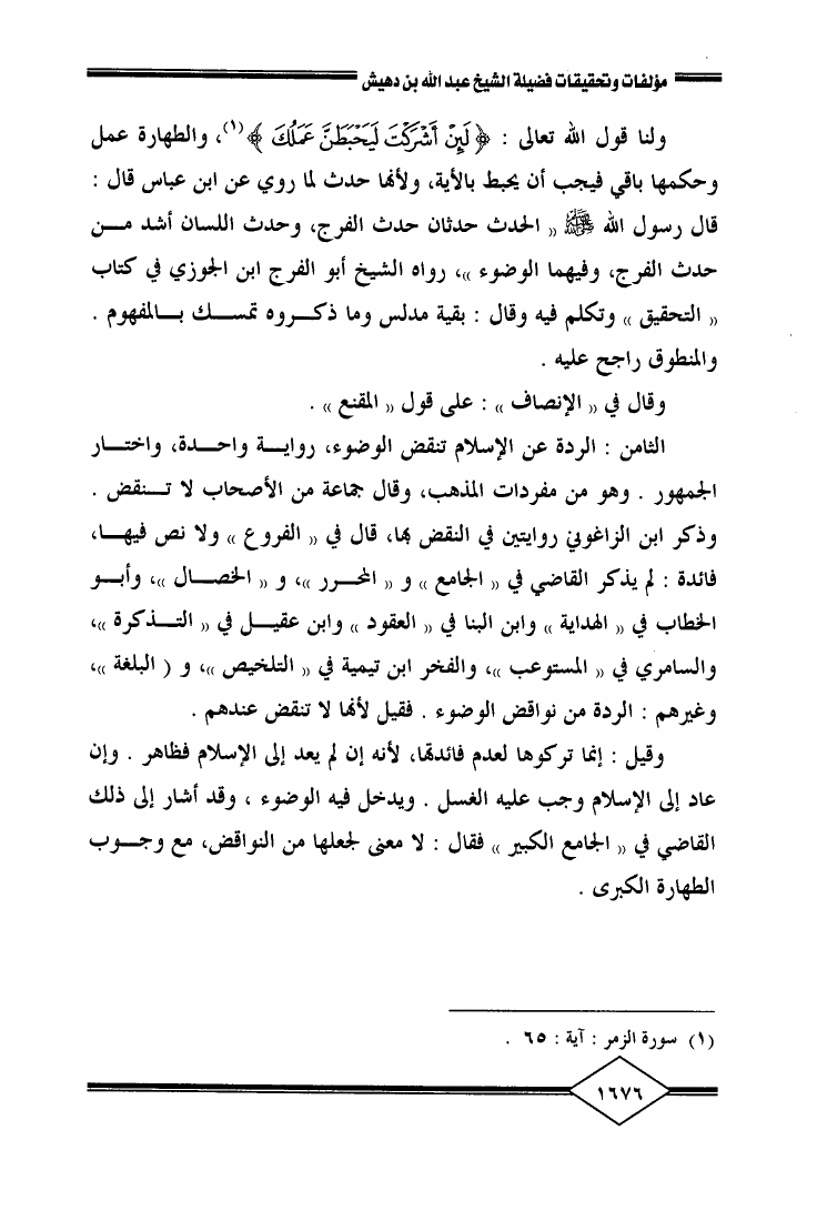 من مؤلفات وتحقيقات سماحة العلامة الشيخ عبد الله بن عمر بن دهيش (ت بن دهيش)