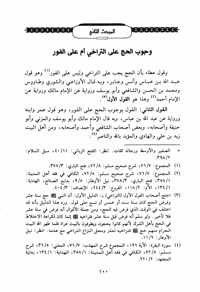 نام کتاب : فقه عطاء بن أبي رباح في المناسك مقارنة بينه وبين فقه الصحابة والتابعين وأصحاب المذاهب نویسنده : محمد بن عبد العزيز اللحيدان جلد : 1 صفحه : 100