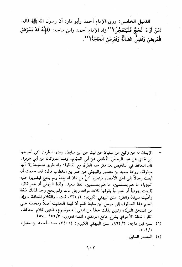 نام کتاب : فقه عطاء بن أبي رباح في المناسك مقارنة بينه وبين فقه الصحابة والتابعين وأصحاب المذاهب نویسنده : محمد بن عبد العزيز اللحيدان جلد : 1 صفحه : 102