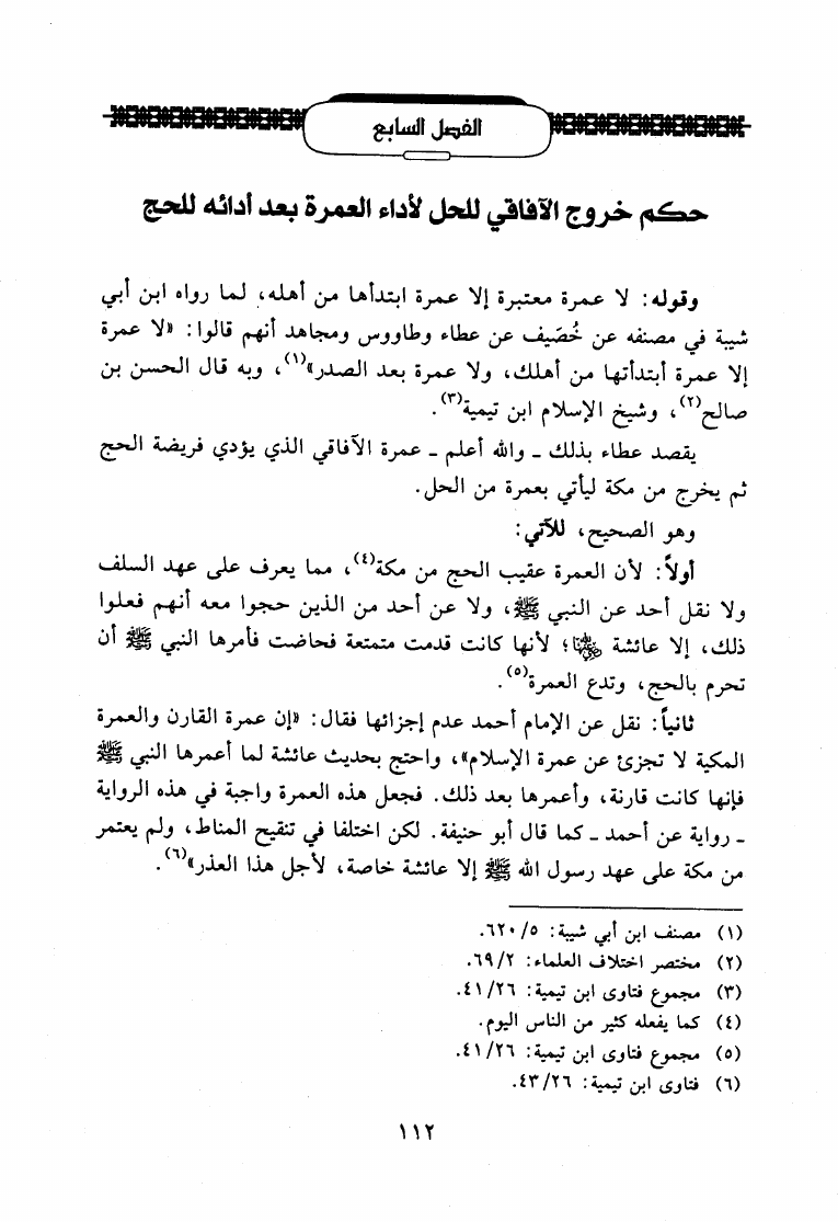 نام کتاب : فقه عطاء بن أبي رباح في المناسك مقارنة بينه وبين فقه الصحابة والتابعين وأصحاب المذاهب نویسنده : محمد بن عبد العزيز اللحيدان جلد : 1 صفحه : 112