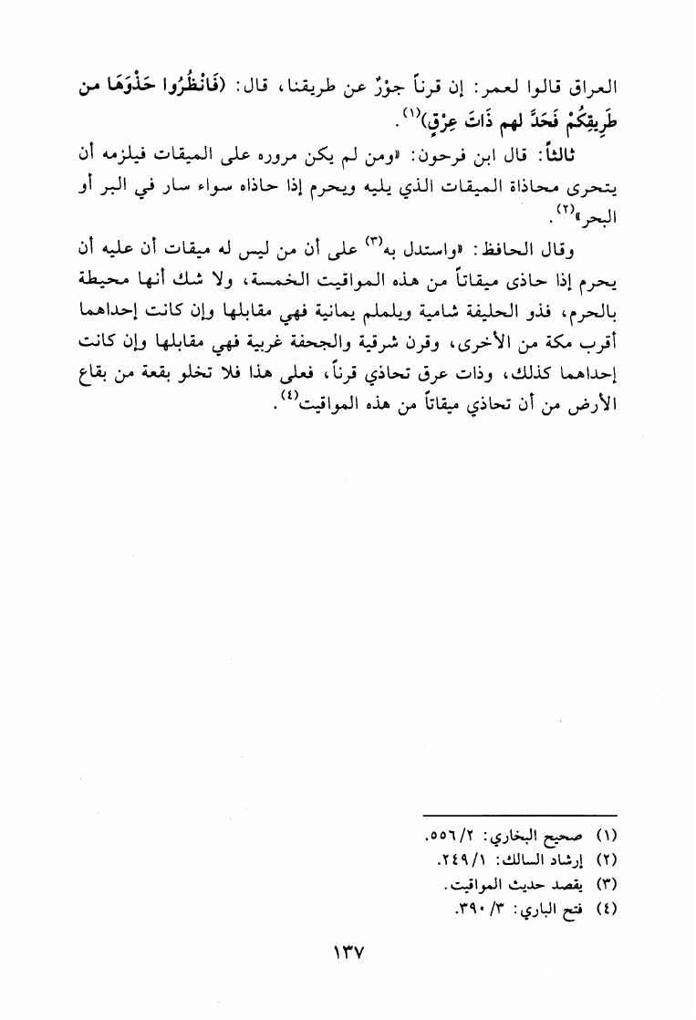 نام کتاب : فقه عطاء بن أبي رباح في المناسك مقارنة بينه وبين فقه الصحابة والتابعين وأصحاب المذاهب نویسنده : محمد بن عبد العزيز اللحيدان جلد : 1 صفحه : 137