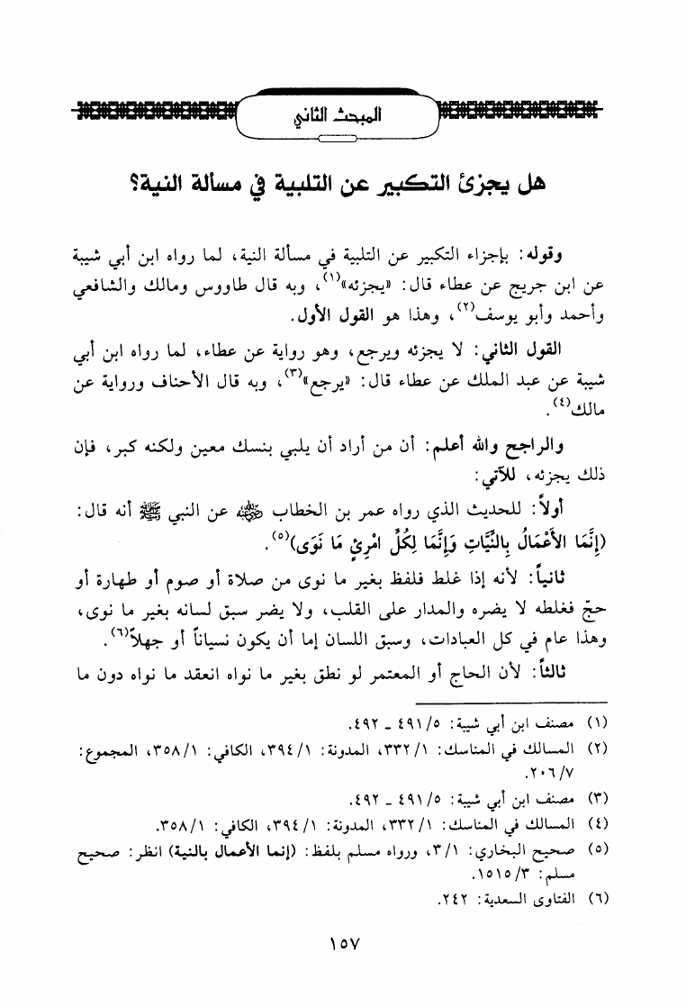 نام کتاب : فقه عطاء بن أبي رباح في المناسك مقارنة بينه وبين فقه الصحابة والتابعين وأصحاب المذاهب نویسنده : محمد بن عبد العزيز اللحيدان جلد : 1 صفحه : 157