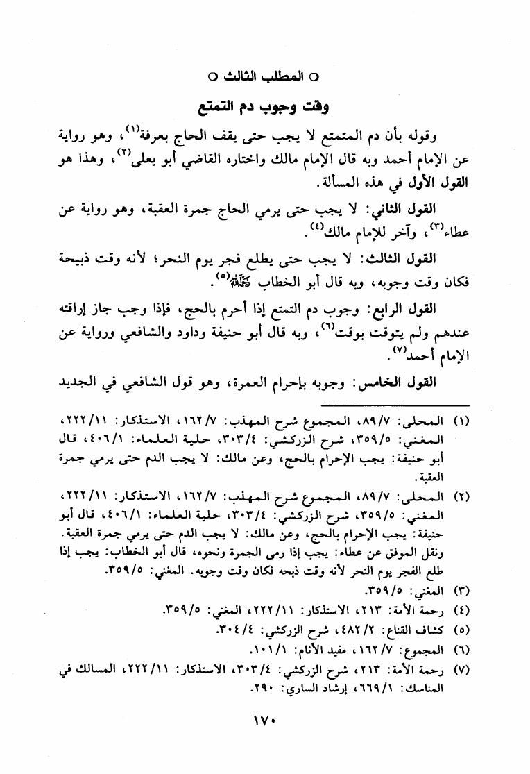 نام کتاب : فقه عطاء بن أبي رباح في المناسك مقارنة بينه وبين فقه الصحابة والتابعين وأصحاب المذاهب نویسنده : محمد بن عبد العزيز اللحيدان جلد : 1 صفحه : 170