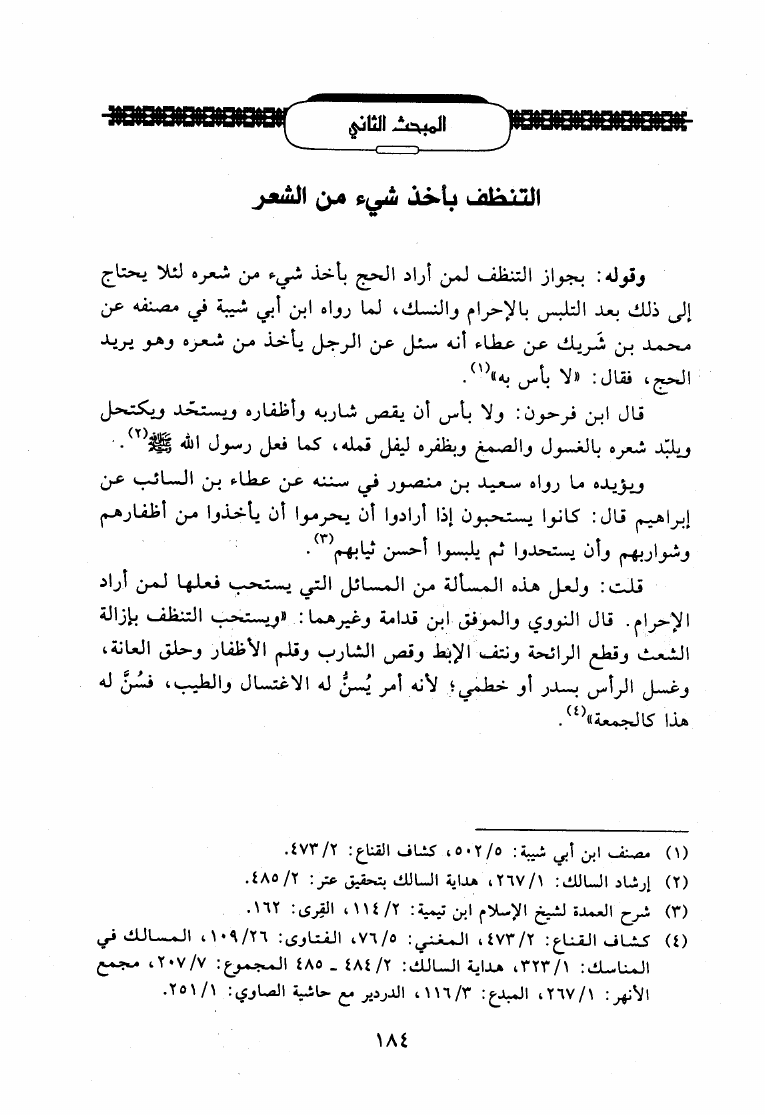 نام کتاب : فقه عطاء بن أبي رباح في المناسك مقارنة بينه وبين فقه الصحابة والتابعين وأصحاب المذاهب نویسنده : محمد بن عبد العزيز اللحيدان جلد : 1 صفحه : 184