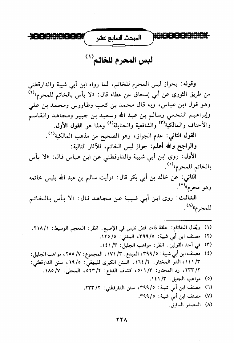 نام کتاب : فقه عطاء بن أبي رباح في المناسك مقارنة بينه وبين فقه الصحابة والتابعين وأصحاب المذاهب نویسنده : محمد بن عبد العزيز اللحيدان جلد : 1 صفحه : 228