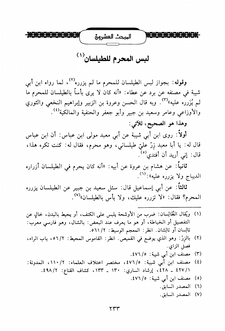 نام کتاب : فقه عطاء بن أبي رباح في المناسك مقارنة بينه وبين فقه الصحابة والتابعين وأصحاب المذاهب نویسنده : محمد بن عبد العزيز اللحيدان جلد : 1 صفحه : 233