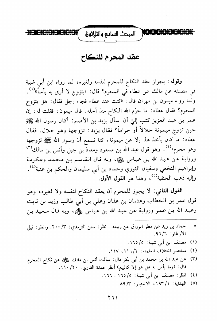 نام کتاب : فقه عطاء بن أبي رباح في المناسك مقارنة بينه وبين فقه الصحابة والتابعين وأصحاب المذاهب نویسنده : محمد بن عبد العزيز اللحيدان جلد : 1 صفحه : 261