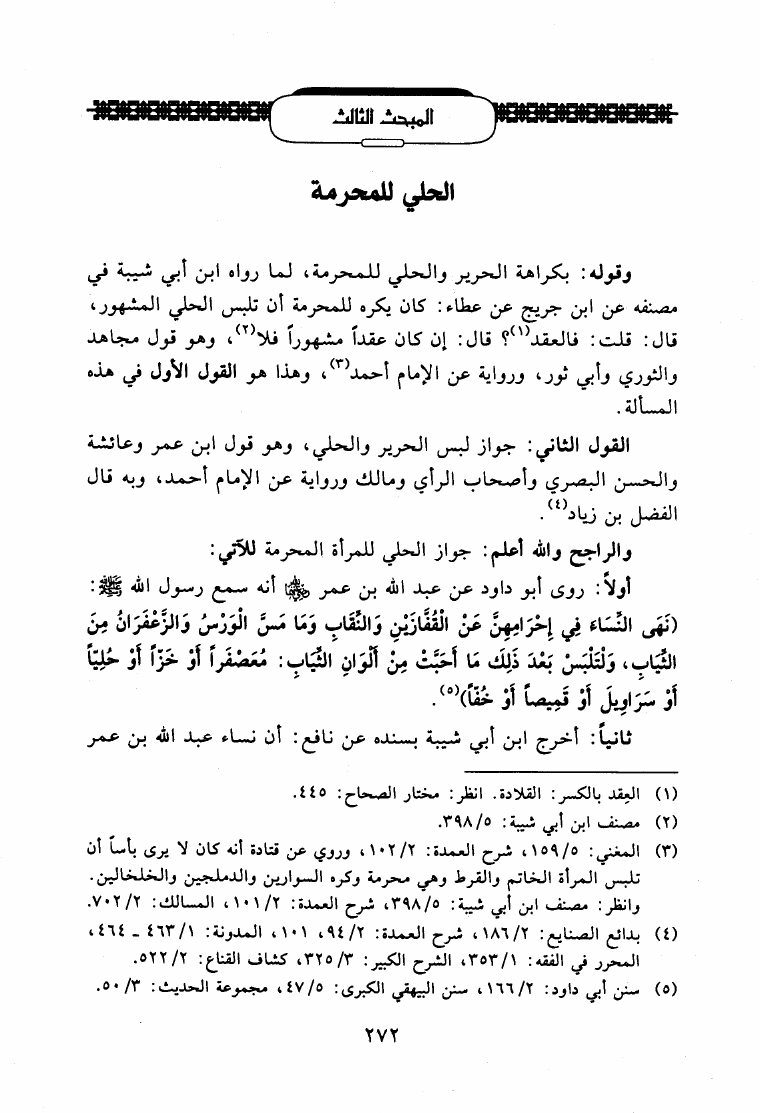 نام کتاب : فقه عطاء بن أبي رباح في المناسك مقارنة بينه وبين فقه الصحابة والتابعين وأصحاب المذاهب نویسنده : محمد بن عبد العزيز اللحيدان جلد : 1 صفحه : 272