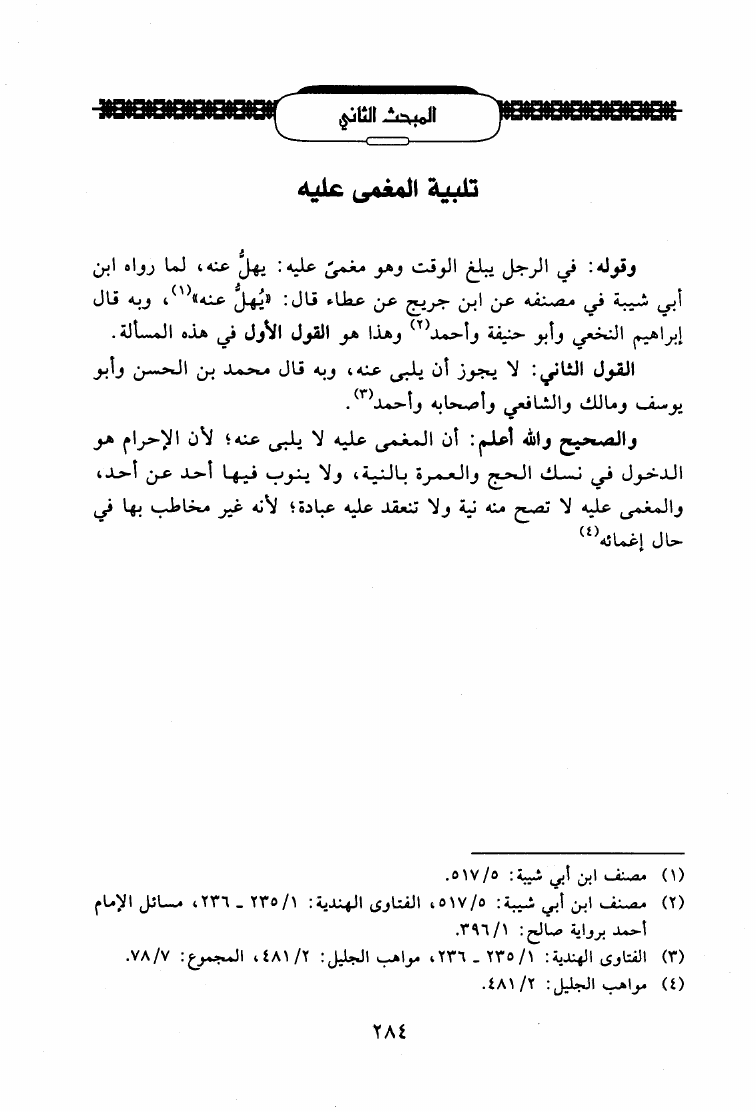 نام کتاب : فقه عطاء بن أبي رباح في المناسك مقارنة بينه وبين فقه الصحابة والتابعين وأصحاب المذاهب نویسنده : محمد بن عبد العزيز اللحيدان جلد : 1 صفحه : 284