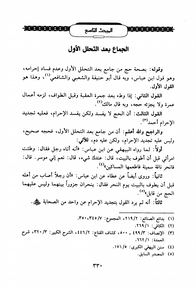 نام کتاب : فقه عطاء بن أبي رباح في المناسك مقارنة بينه وبين فقه الصحابة والتابعين وأصحاب المذاهب نویسنده : محمد بن عبد العزيز اللحيدان جلد : 1 صفحه : 330
