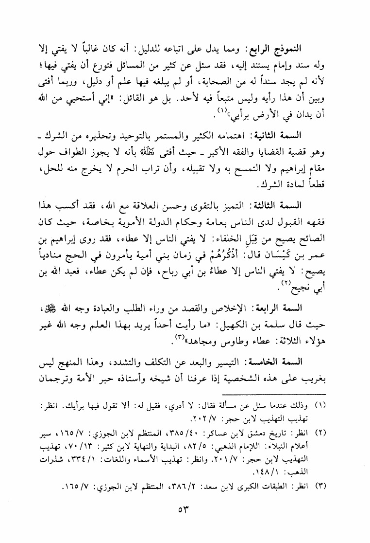 نام کتاب : فقه عطاء بن أبي رباح في المناسك مقارنة بينه وبين فقه الصحابة والتابعين وأصحاب المذاهب نویسنده : محمد بن عبد العزيز اللحيدان جلد : 1 صفحه : 53