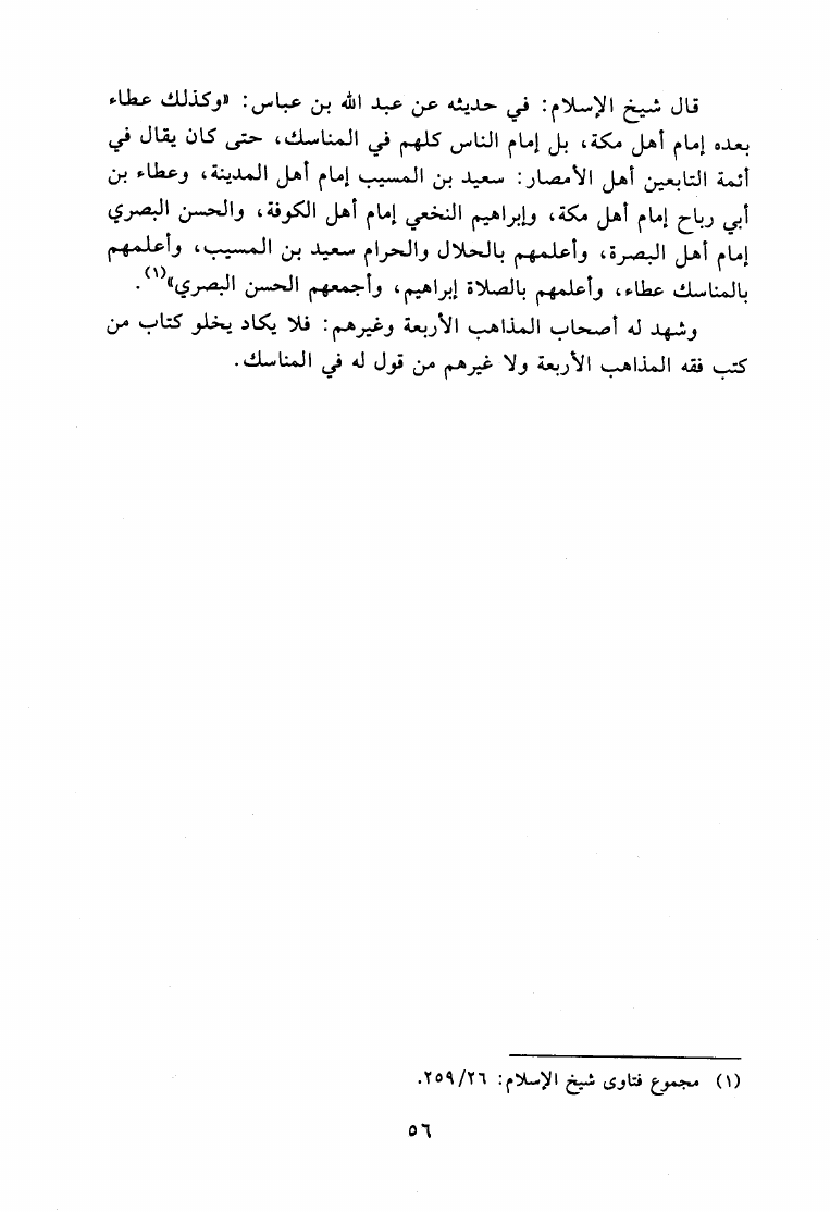 نام کتاب : فقه عطاء بن أبي رباح في المناسك مقارنة بينه وبين فقه الصحابة والتابعين وأصحاب المذاهب نویسنده : محمد بن عبد العزيز اللحيدان جلد : 1 صفحه : 56
