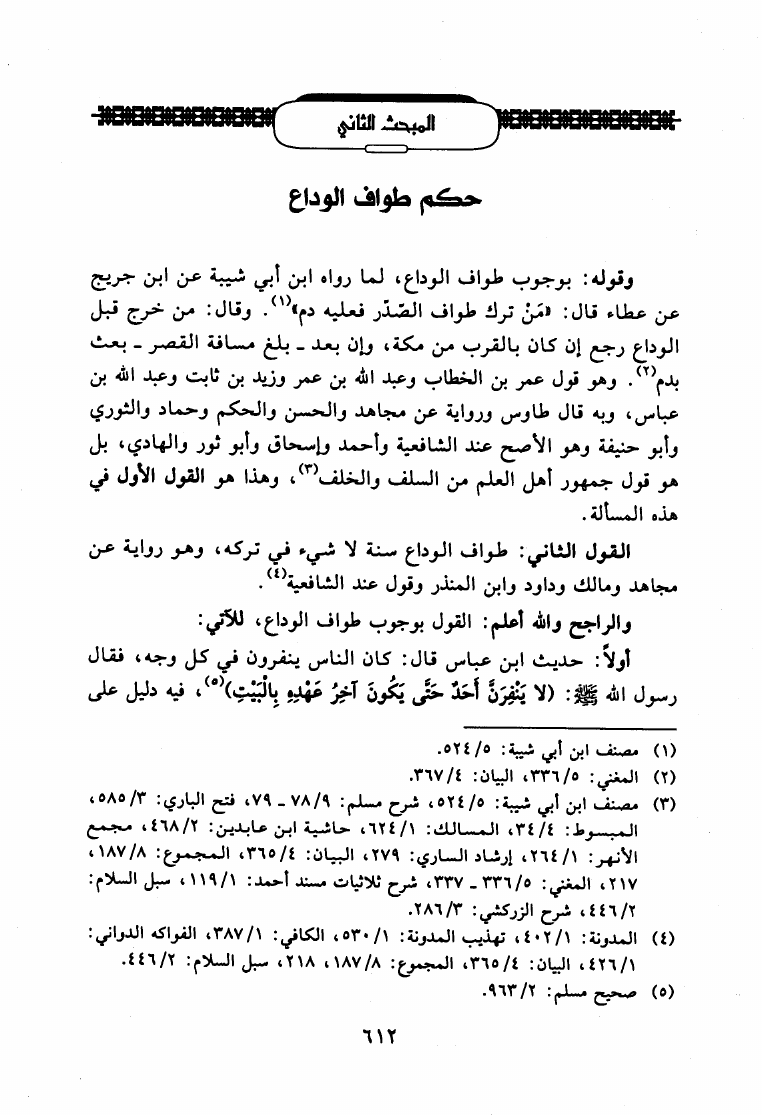 نام کتاب : فقه عطاء بن أبي رباح في المناسك مقارنة بينه وبين فقه الصحابة والتابعين وأصحاب المذاهب نویسنده : محمد بن عبد العزيز اللحيدان جلد : 1 صفحه : 612