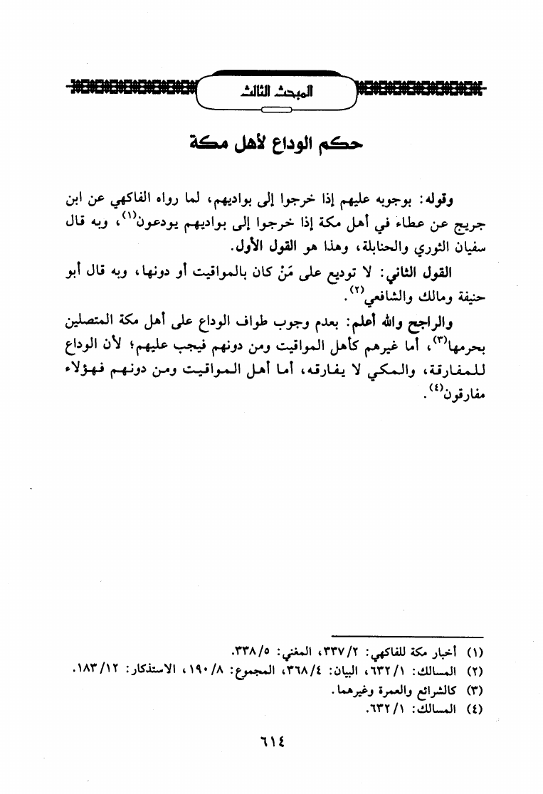 نام کتاب : فقه عطاء بن أبي رباح في المناسك مقارنة بينه وبين فقه الصحابة والتابعين وأصحاب المذاهب نویسنده : محمد بن عبد العزيز اللحيدان جلد : 1 صفحه : 614