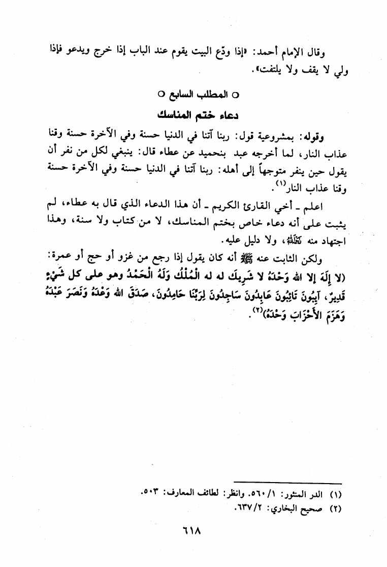 نام کتاب : فقه عطاء بن أبي رباح في المناسك مقارنة بينه وبين فقه الصحابة والتابعين وأصحاب المذاهب نویسنده : محمد بن عبد العزيز اللحيدان جلد : 1 صفحه : 618