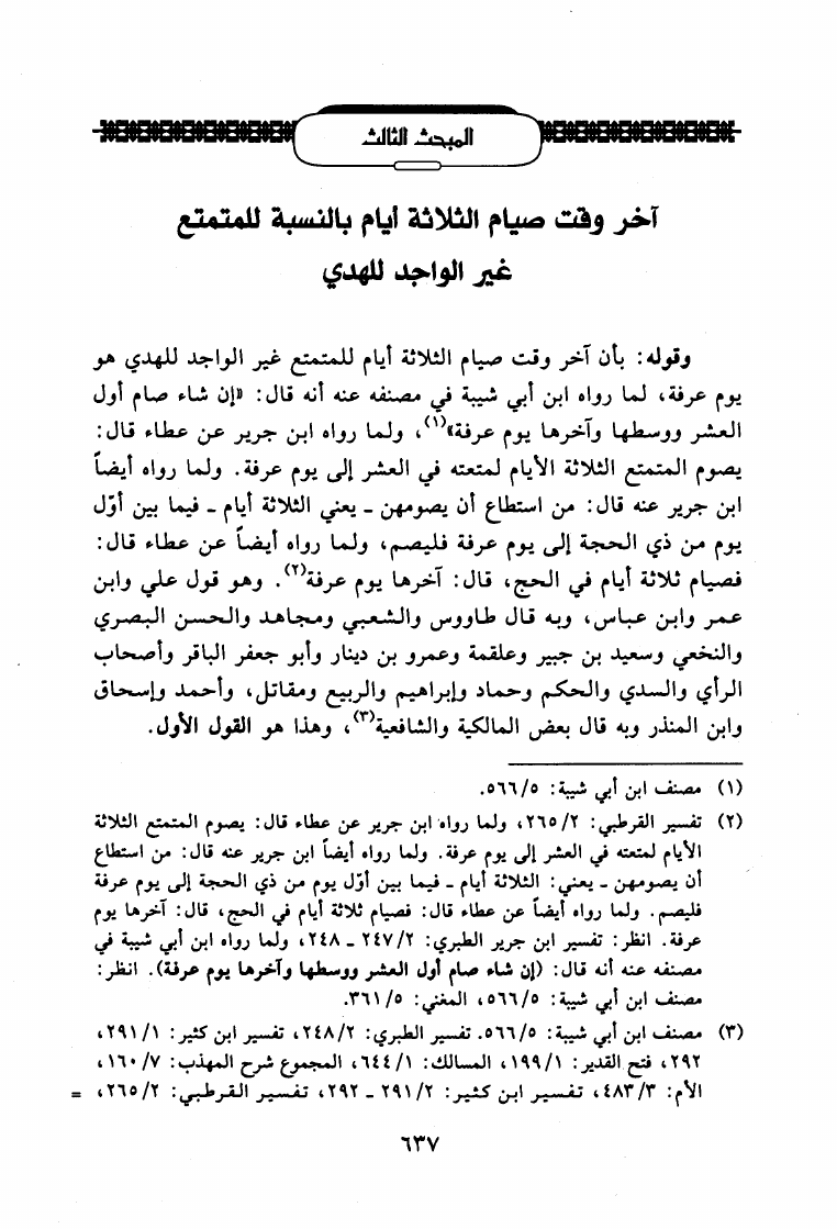 نام کتاب : فقه عطاء بن أبي رباح في المناسك مقارنة بينه وبين فقه الصحابة والتابعين وأصحاب المذاهب نویسنده : محمد بن عبد العزيز اللحيدان جلد : 1 صفحه : 637