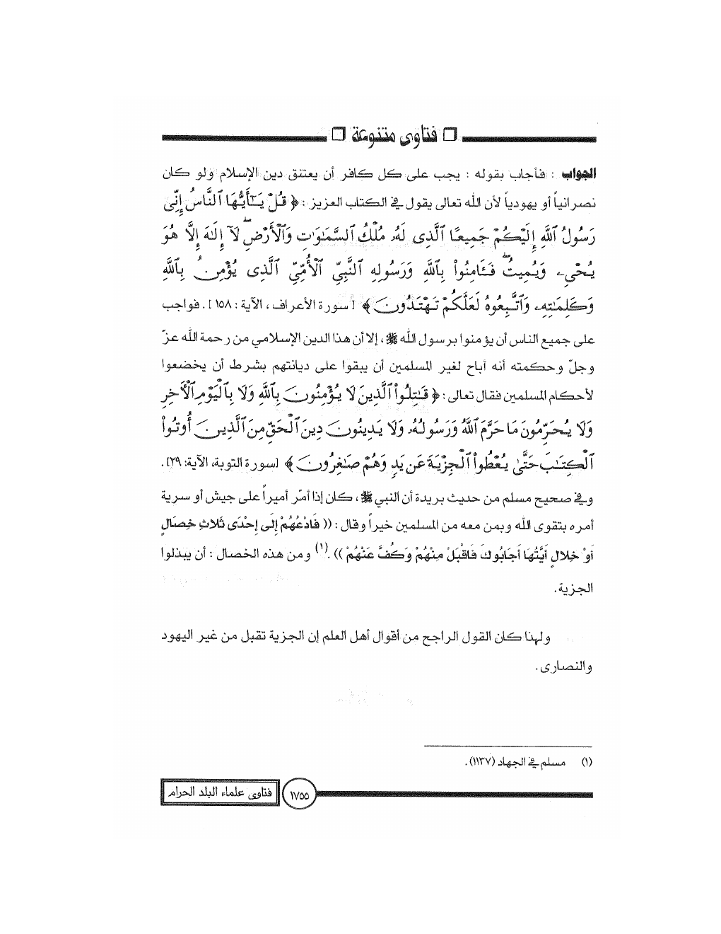 الفتاوى الشرعية في المسائل العصرية من فتاوى علماء البلد الحرام