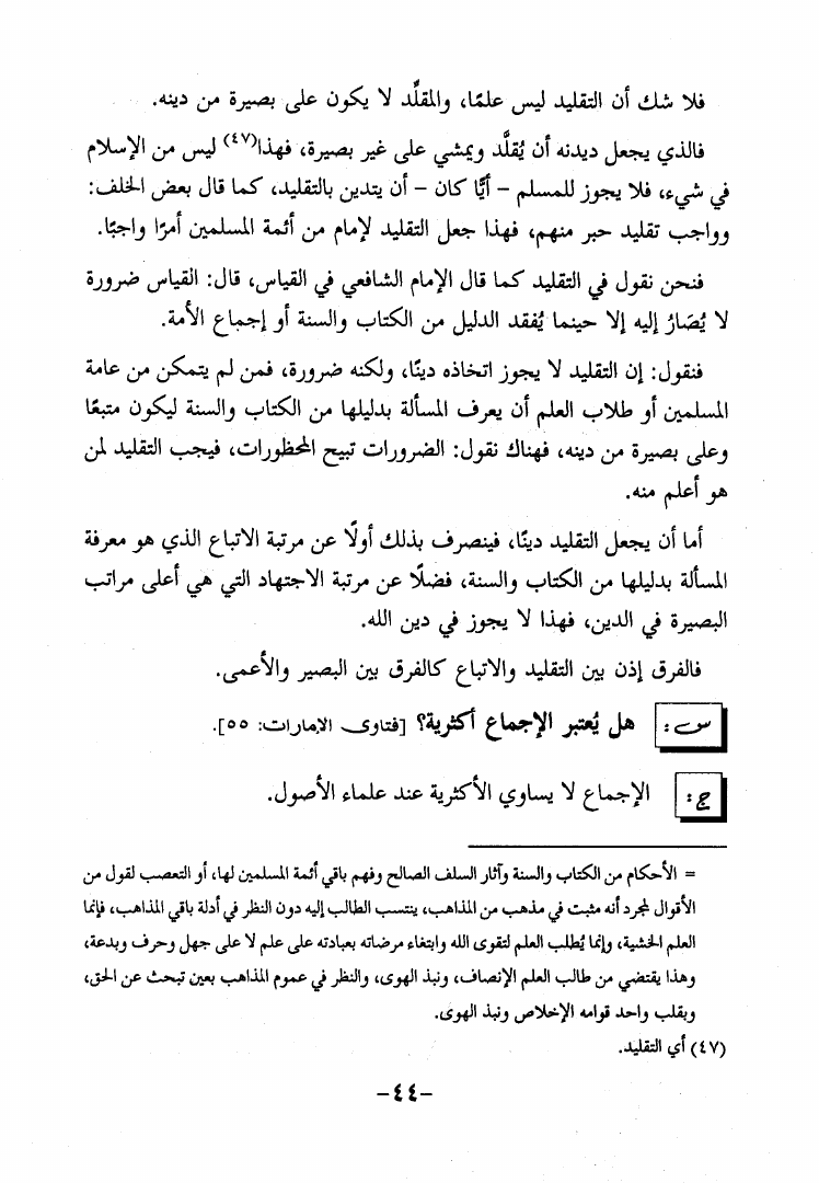 نام کتاب : المسائل العلمية والفتاوى الشرعية فتاوى الشيخ العلامة محمد ناصر الدين الألباني في المدينة والإمارات نویسنده : عمرو عبد المنعم سليم جلد : 1 صفحه : 44