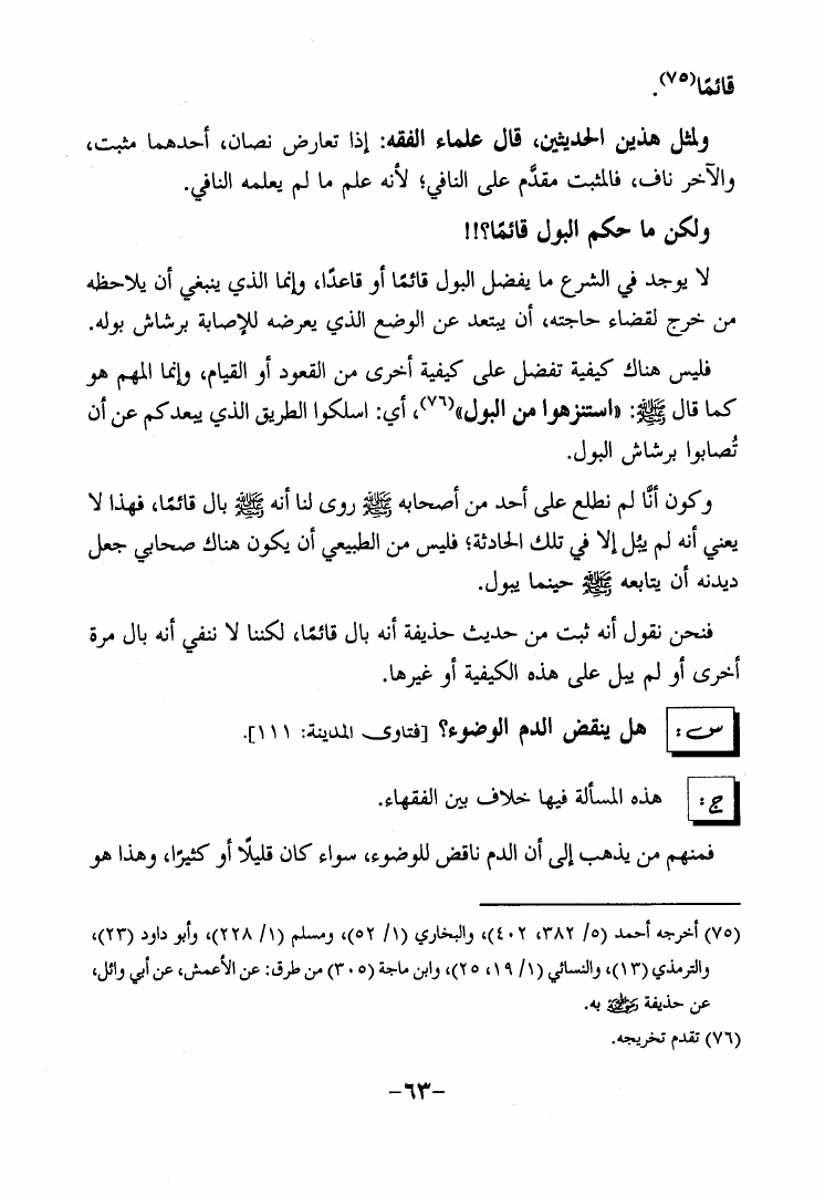 نام کتاب : المسائل العلمية والفتاوى الشرعية فتاوى الشيخ العلامة محمد ناصر الدين الألباني في المدينة والإمارات نویسنده : عمرو عبد المنعم سليم جلد : 1 صفحه : 63