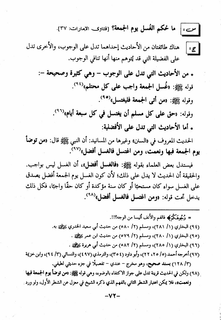 نام کتاب : المسائل العلمية والفتاوى الشرعية فتاوى الشيخ العلامة محمد ناصر الدين الألباني في المدينة والإمارات نویسنده : عمرو عبد المنعم سليم جلد : 1 صفحه : 72